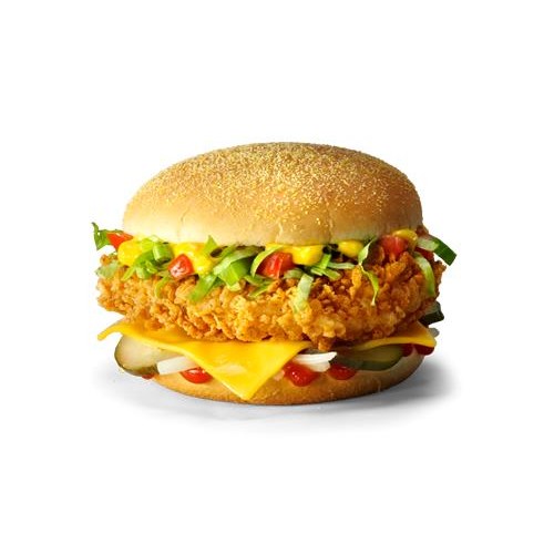Пряный горчичный соус, кетчуп, сочное филе в оригинальной панировке, лук, сыр Чеддер, огурцы на пшеничной булочке с кукурузной посыпкой, свежий салат и ломтики помидора.... Читать далее...